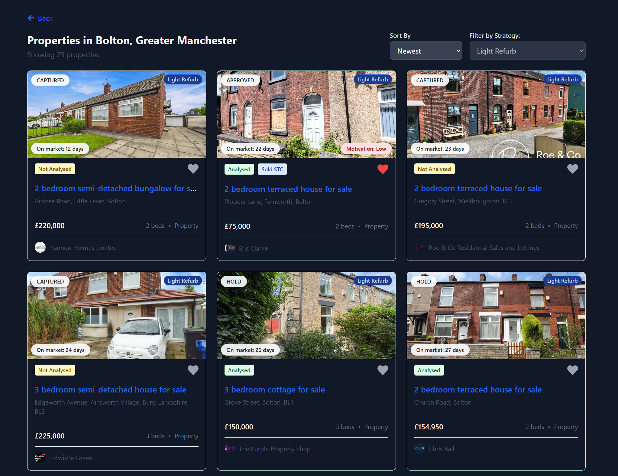 Automate sourcing, analysis, and deal flow for UK property investors.